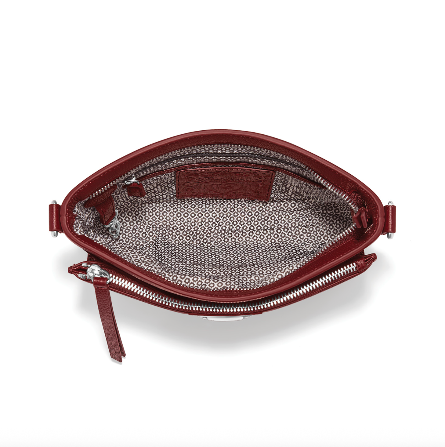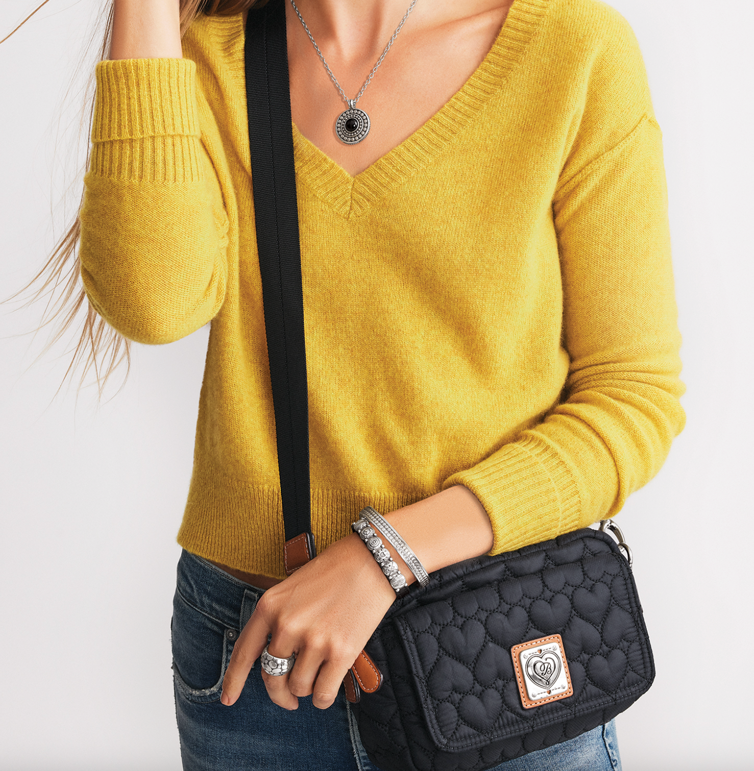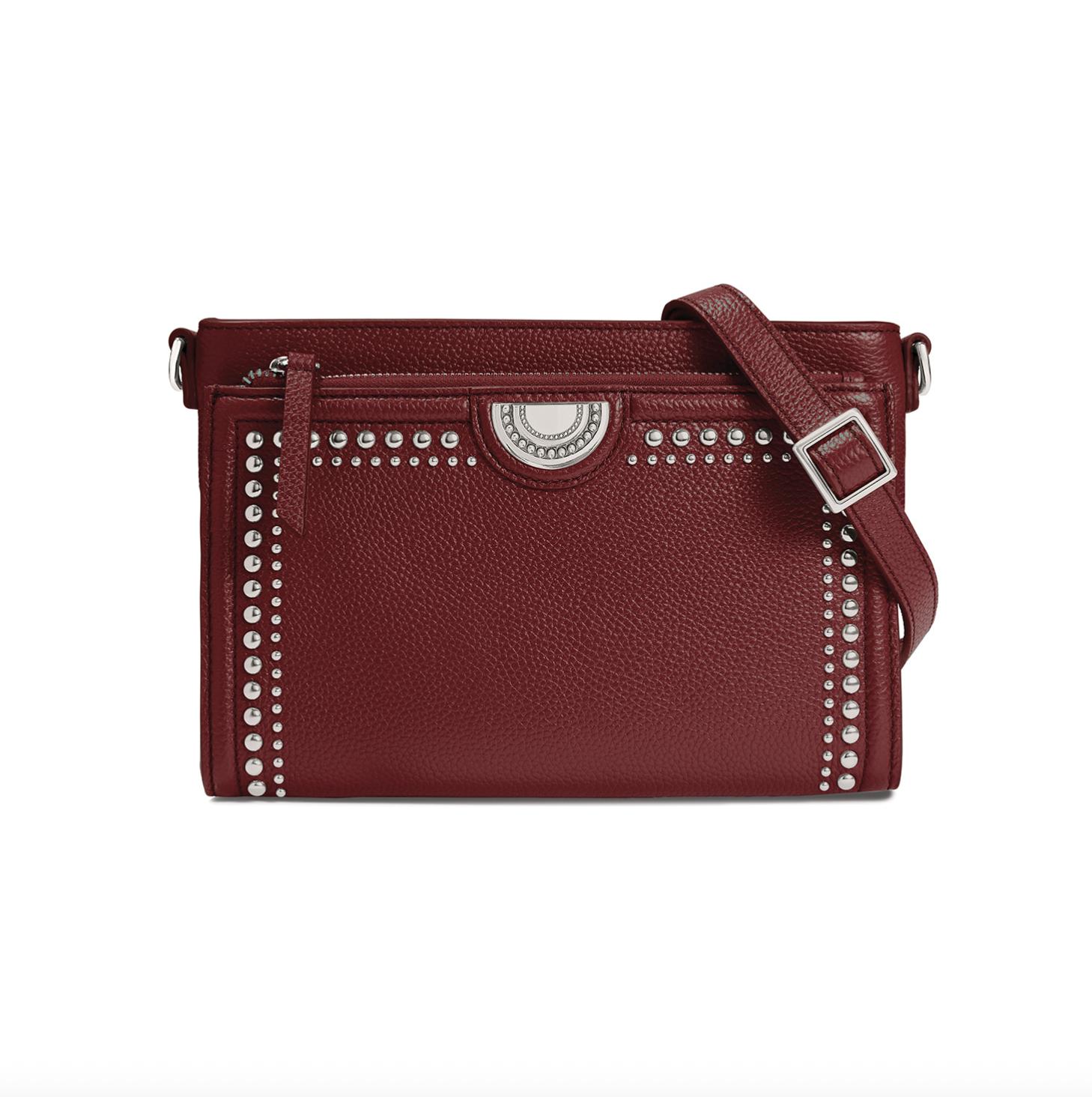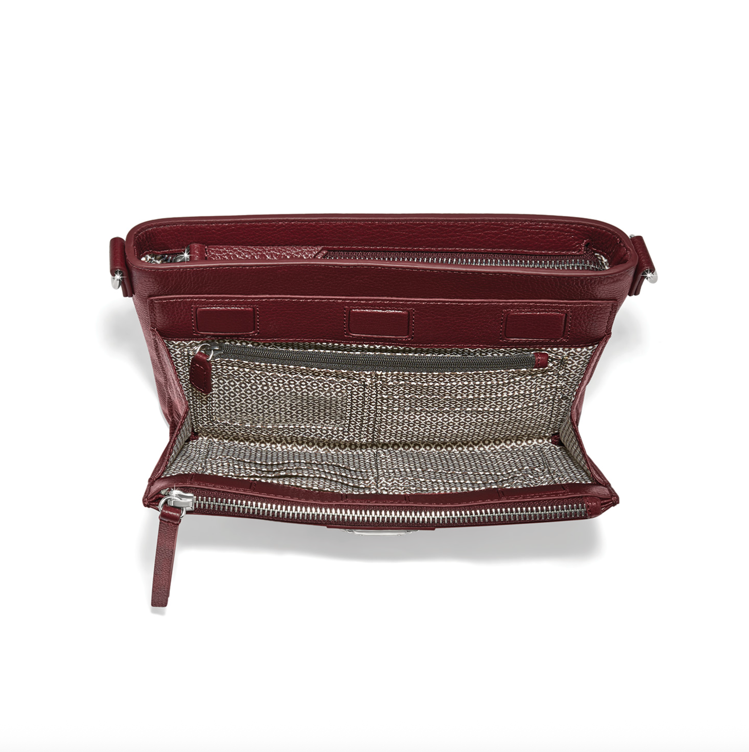 Herringbone handwoven front details accent the sophisticated silhouette in rich pebbled leather. It's the perfect size to carry all your essentials. Short handles and crossbody strap make it easy to pick it up and go on busy days.